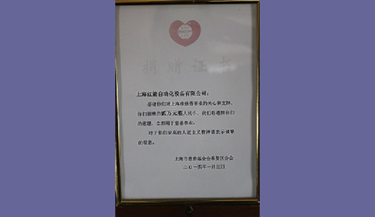 2015年,上海紅箭自動化設備有限公司為上海市慈善基金會捐款 2015